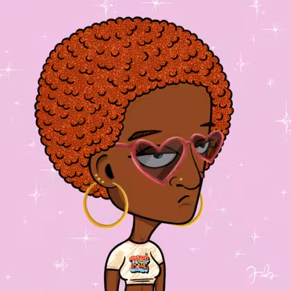Collection Depressed Citizens Artist Juls Description ART. No team, no project, no future. Depressed Citizens is an urban & existential Art expression on Ordinals. In a parallel universe, "THEI" control us. DC unites against toxic society, encouraging critical thinking. 100% hand made collection that took Juls more than 6 months of daily work. Name Citizen#437 Origin African descendant Gender Woman Necklace No Necklace Hat No Hat Mustache Beard No beard Glasses Heart-shaped glasses Earrings Ball earrings trio Hair Style Afro Clothes Take it easy crop top Tattoo No Tattoo Star Background With stars