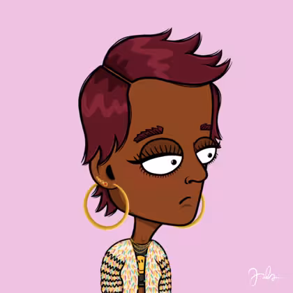 Collection Depressed Citizens Artist Juls Description ART. No team, no project, no future. Depressed Citizens is an urban & existential Art expression on Ordinals. In a parallel universe, "THEI" control us. DC unites against toxic society, encouraging critical thinking. 100% hand made collection that took Juls more than 6 months of daily work. Name Citizen#1002 Origin African descendant Gender Woman Necklace Gold layered necklace Hat No Hat Mustache Beard No beard Glasses No Glasses Earrings Upper lobe strass Hair Style Shaggy short Clothes Smiley crop top Tattoo No Tattoo Star Background Without stars