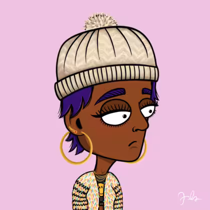 Collection Depressed Citizens Artist Juls Description ART. No team, no project, no future. Depressed Citizens is an urban & existential Art expression on Ordinals. In a parallel universe, "THEI" control us. DC unites against toxic society, encouraging critical thinking. 100% hand made collection that took Juls more than 6 months of daily work. Name Citizen#2397 Origin African descendant Gender Woman Necklace Gold layered necklace Hat Bobble hat Mustache Beard No beard Glasses No Glasses Earrings Upper lobe strass Hair Style Shaggy short Clothes Smiley crop top Tattoo No Tattoo Star Background Without stars
