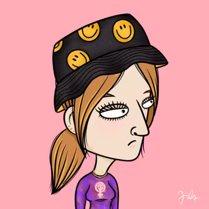 Collection Depressed Citizens Artist Juls Description ART. No team, no project, no future. Depressed Citizens is an urban & existential Art expression on Ordinals. In a parallel universe, "THEI" control us. DC unites against toxic society, encouraging critical thinking. 100% hand made collection that took Juls more than 6 months of daily work. Name Citizen#1265 Origin Caucasian non hispanic Gender Woman Necklace Gold layered necklace Hat Smiley bucket hat Mustache Beard No beard Glasses No Glasses Earrings Rook hoop Hair Style Low ponytail Clothes Women power long-sleeve shirt Tattoo No Tattoo Star Background Without stars