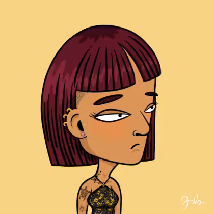 Collection Depressed Citizens Artist Juls Description ART. No team, no project, no future. Depressed Citizens is an urban & existential Art expression on Ordinals. In a parallel universe, "THEI" control us. DC unites against toxic society, encouraging critical thinking. 100% hand made collection that took Juls more than 6 months of daily work. Name Citizen#1269 Origin Asian & Pacific islander Gender Woman Necklace No Necklace Hat No Hat Mustache Beard No beard Glasses No Glasses Earrings Tragus star earring Hair Style Mid-length mushroom Clothes Golden black halterneck top Tattoo Rose tattoo Star Background Without stars