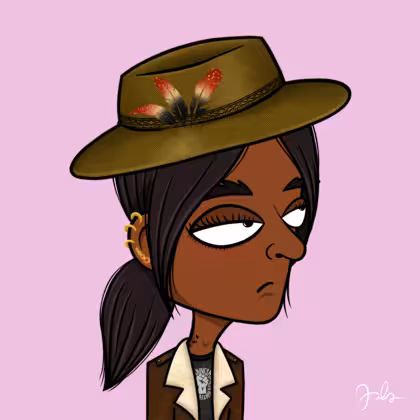 Collection Depressed Citizens Artist Juls Description ART. No team, no project, no future. Depressed Citizens is an urban & existential Art expression on Ordinals. In a parallel universe, "THEI" control us. DC unites against toxic society, encouraging critical thinking. 100% hand made collection that took Juls more than 6 months of daily work. Name Citizen#432 Origin African descendant Gender Woman Necklace No Necklace Hat Fedora hat Mustache Beard No beard Glasses No Glasses Earrings Upper lobe strass Hair Style Low ponytail Clothes BLM women shirt Tattoo Rose tattoo Star Background Without stars