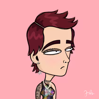Collection Depressed Citizens Artist Juls Description ART. No team, no project, no future. Depressed Citizens is an urban & existential Art expression on Ordinals. In a parallel universe, "THEI" control us. DC unites against toxic society, encouraging critical thinking. 100% hand made collection that took Juls more than 6 months of daily work. Name Citizen#39 Origin Caucasian non hispanic Gender Woman Necklace Pearl necklace Hat No Hat Mustache Beard No beard Glasses No Glasses Earrings Upper lobe rings Hair Style Shaggy short Clothes Love is love one shoulder crop Tattoo Maya tattoo Star Background Without stars