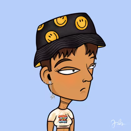 Collection Depressed Citizens Artist Juls Description ART. No team, no project, no future. Depressed Citizens is an urban & existential Art expression on Ordinals. In a parallel universe, "THEI" control us. DC unites against toxic society, encouraging critical thinking. 100% hand made collection that took Juls more than 6 months of daily work. Name Citizen#951 Origin Hispanic Gender Woman Necklace Choker Hat Smiley bucket hat Mustache Beard No beard Glasses No Glasses Earrings Upper lobe rings Hair Style Short pixie Clothes Take it easy crop top Tattoo No Tattoo Star Background Without stars