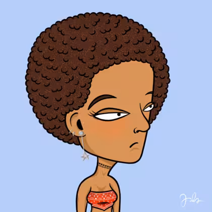 Collection Depressed Citizens Artist Juls Description ART. No team, no project, no future. Depressed Citizens is an urban & existential Art expression on Ordinals. In a parallel universe, "THEI" control us. DC unites against toxic society, encouraging critical thinking. 100% hand made collection that took Juls more than 6 months of daily work. Name Citizen#1213 Origin Hispanic Gender Woman Necklace Choker Hat No Hat Mustache Beard No beard Glasses No Glasses Earrings Upper lobe rings Hair Style Afro Clothes Red bandana crop top Tattoo No Tattoo Star Background Without stars