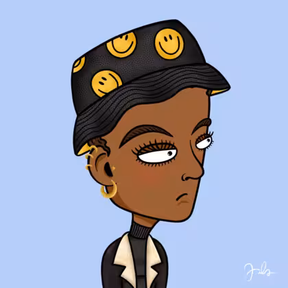 Collection Depressed Citizens Artist Juls Description ART. No team, no project, no future. Depressed Citizens is an urban & existential Art expression on Ordinals. In a parallel universe, "THEI" control us. DC unites against toxic society, encouraging critical thinking. 100% hand made collection that took Juls more than 6 months of daily work. Name Citizen#2561 Origin Hispanic Gender Woman Necklace No Necklace Hat Smiley bucket hat Mustache Beard No beard Glasses No Glasses Earrings Tragus star earring Hair Style Short curly with gel Clothes Black turtleneck women's sweater Tattoo No Tattoo Star Background Without stars